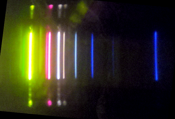 The infrared photo (right) was taken with a RasPi NoIR camera through an amber filter. The range of 520-1100nm is depicted. False colors are: blue-white (790-1100nm); yellow (680-790nm). Red and green colors are true. |